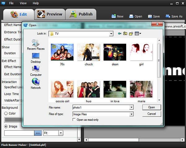 - Sie können irgendein Bild von Ihrer Festplatte hinzufügen, um Hintergrundbild für Ihr Flash-Intro einzustellen.