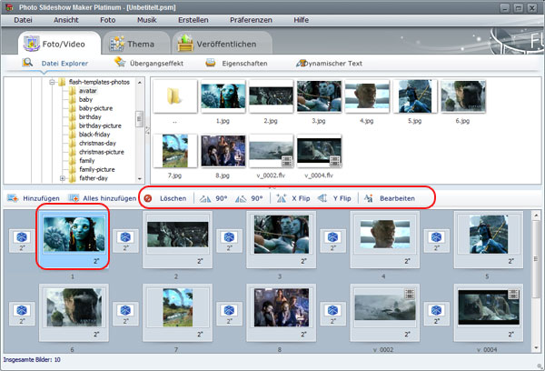 Foto-Diashow erstellen und in FLV, MPEG, AVI speichern für iPod, PSP, Handys.